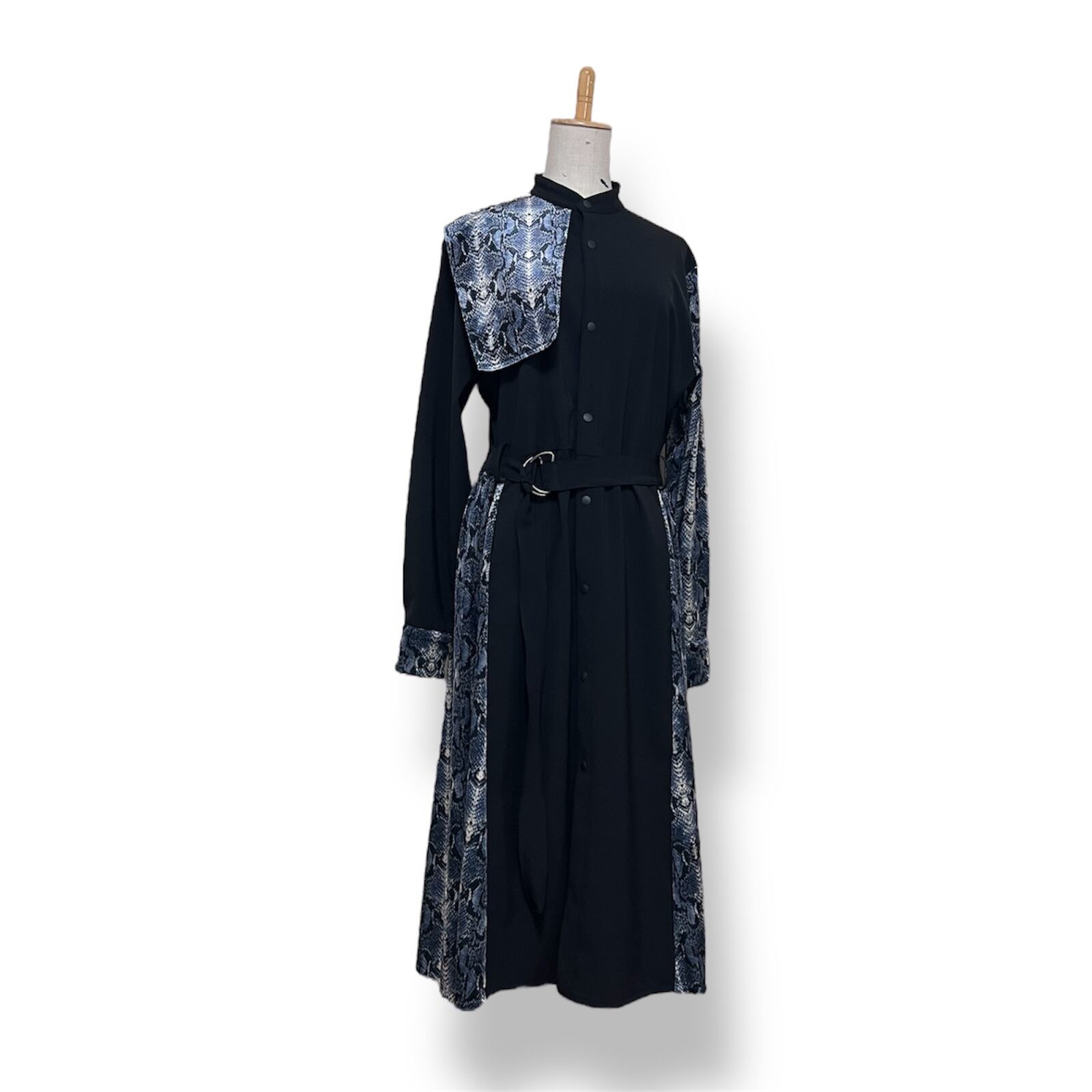 ベロアを組み合わせたジェンダーレスシャツドレス。