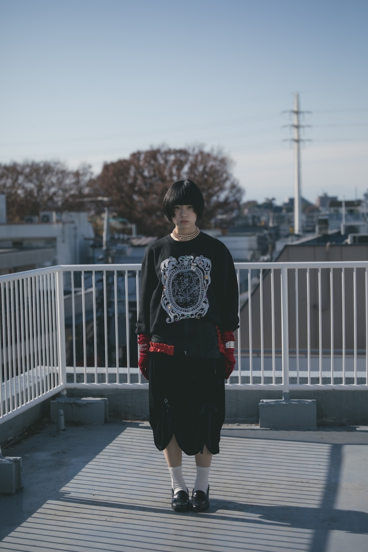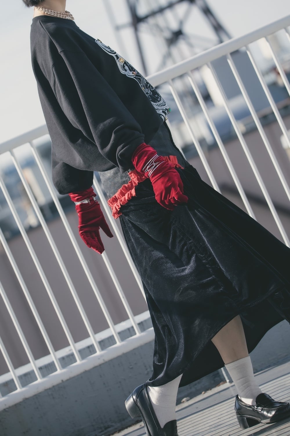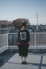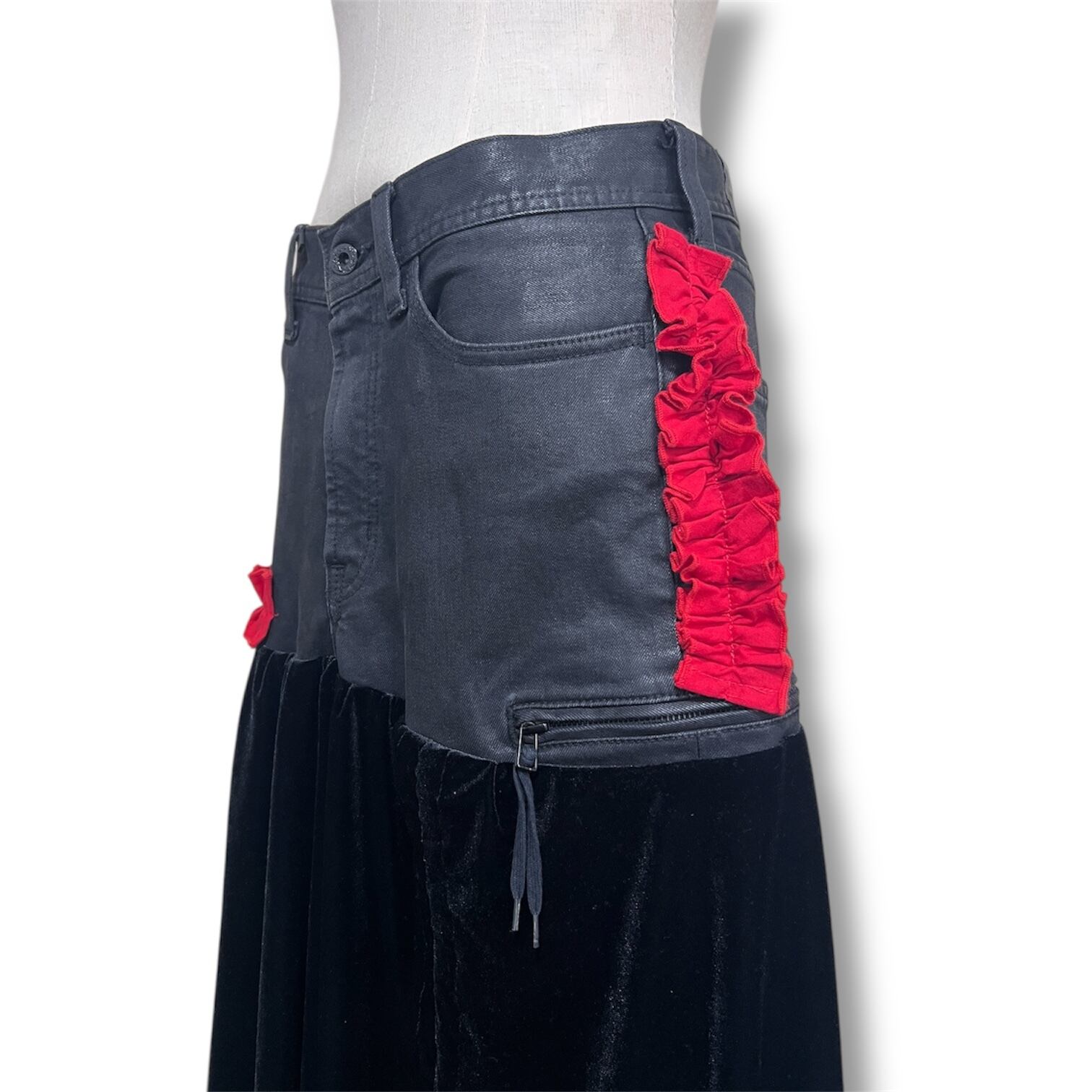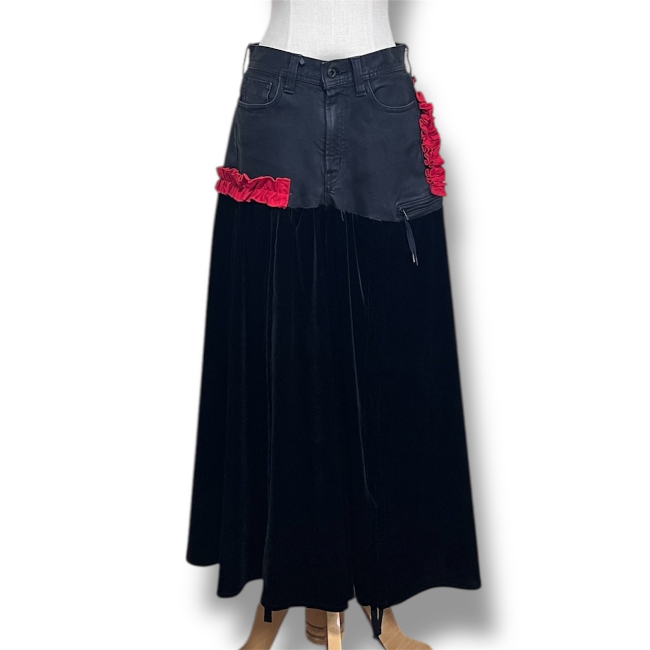 ベロアを切り替えたジェンダーレススカート。