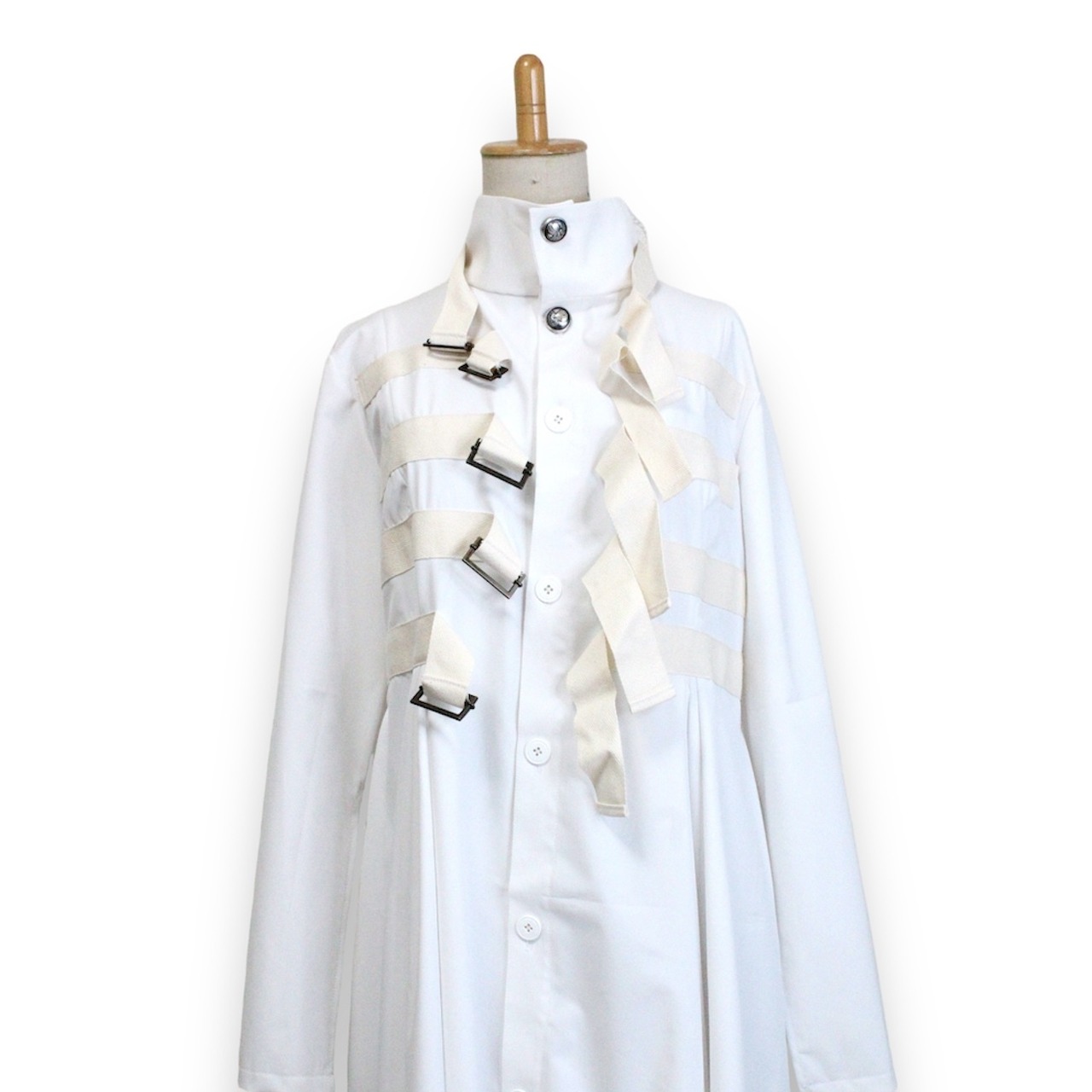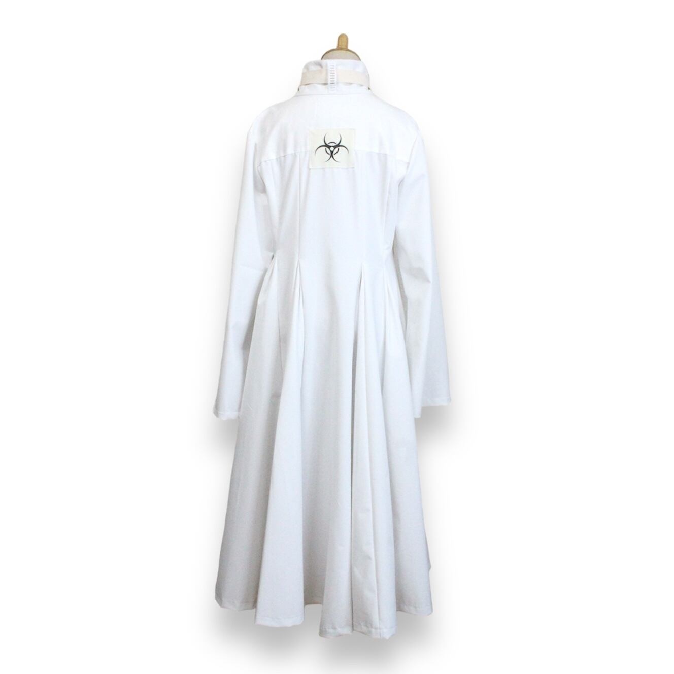 ヴィンテージと白衣用のボタンを使用し、袖は作業がしやすいようスリット入り。